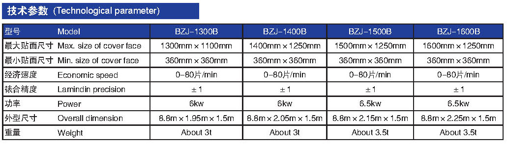 本機型設計理念超前,能夠真正意義上實現(xiàn)高速連續(xù)工作,是半自動貼面機領(lǐng)域最為先進、新型、精確的一款機型。